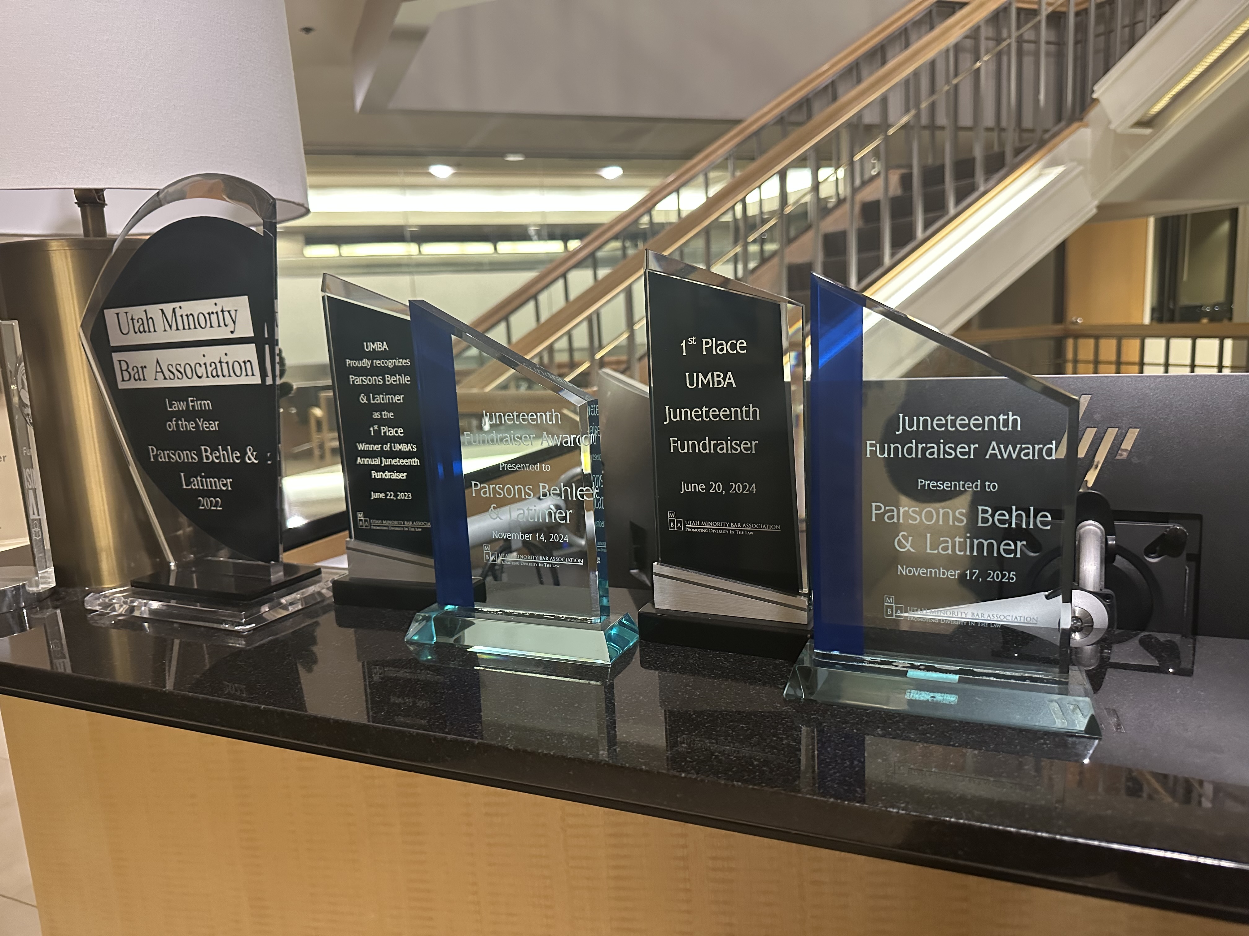 On Nov. 17, 2025, Parsons Behle & Latimer (Parsons) was honored at the Utah Minority Bar Association (UBMA) Scholarship and Awards Banquet as the recipient of the Juneteenth Fundraiser Award. Each year, UMBA hosts this fundraiser on behalf of a local nonprofit organization committed to serving underprivileged communities. According to UMBA President Aline Longstaff, the award goes to a law firm or attorney team in Utah who raises the most money for UMBA's annual Juneteenth Fundraiser.